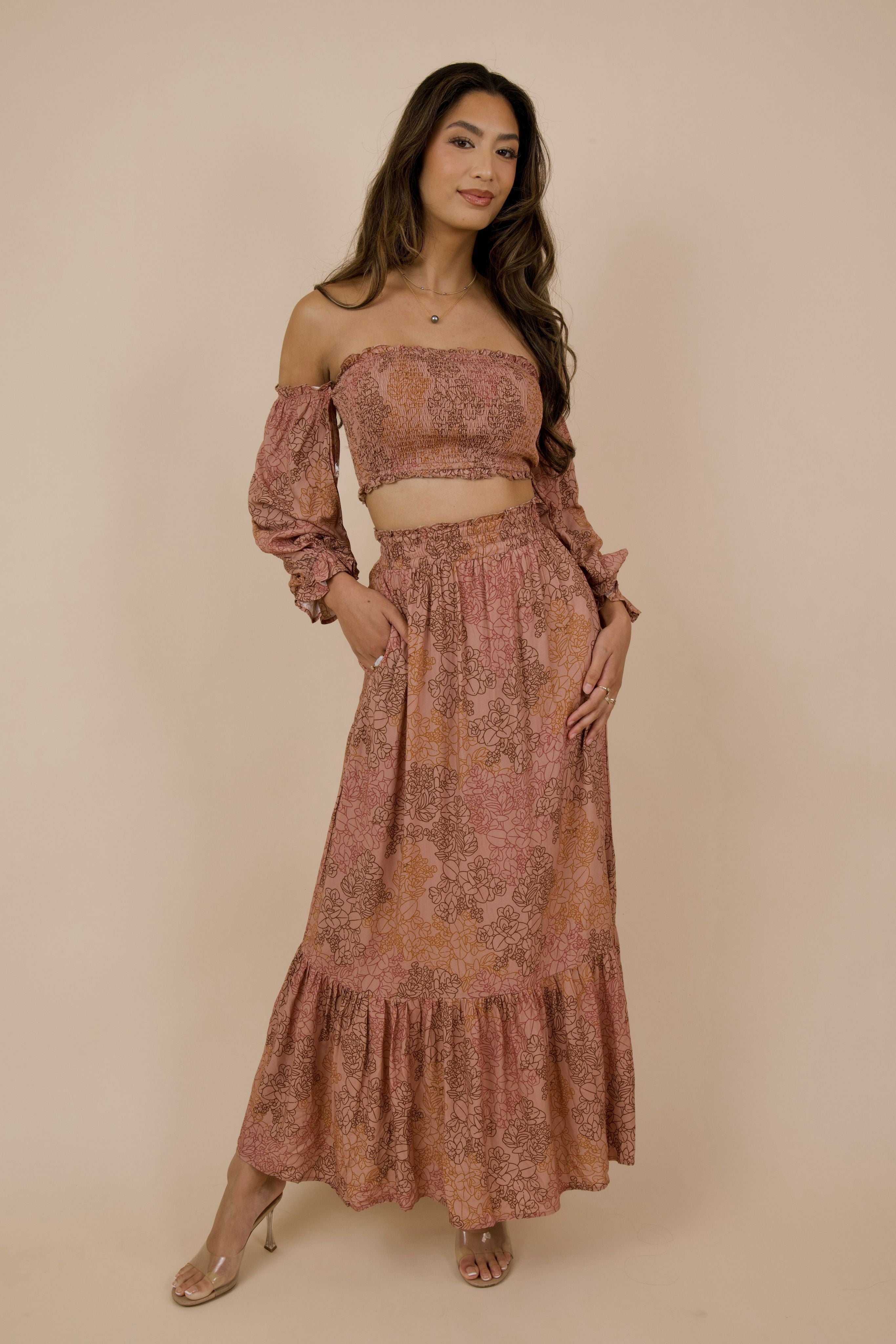 Effortlessly feminine and rooted in grace, the Healani Skirt flows with every step. The Dusty Rose Liko print evokes the tender unfolding of new growth; a reminder of renewal and connection to the ʻāina. Designed for comfort and versatility, its smocked waistband flatters while soft gathers and a tiered ruffle hem create gentle movement that feels as beautiful as it looks.
